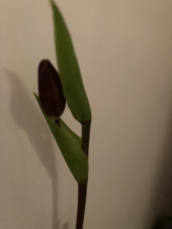 Только показался бутончик на первом цветоносе. Вилочку появившегося цветоноса впервые сфотографировала 16 ноября.