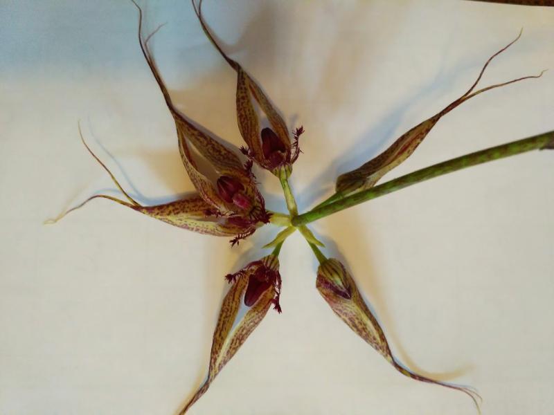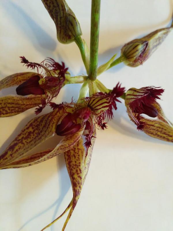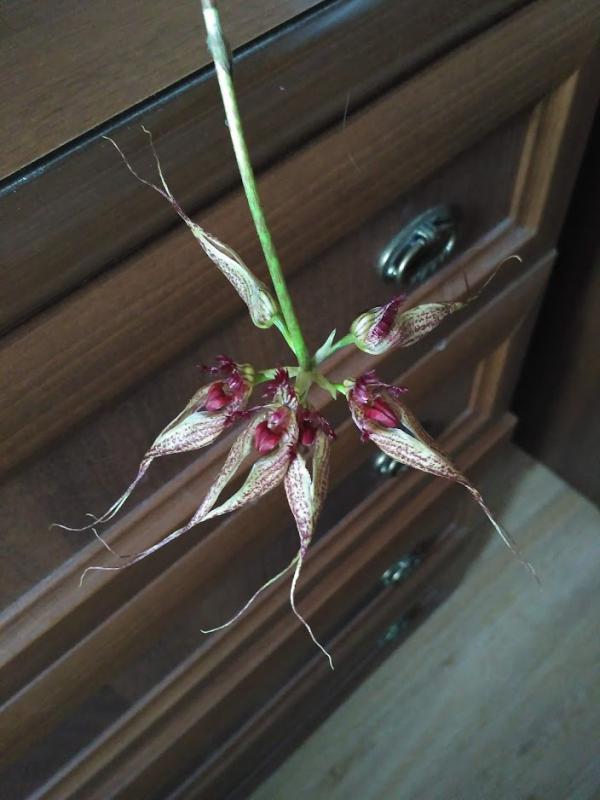 Nataliya, нашла название. Bulbophyllum ornatissimum (украшенный). Немножко отличается от Ротшильда. Вот сейчас в процессе роспуска. Вчера начали раскрываться.