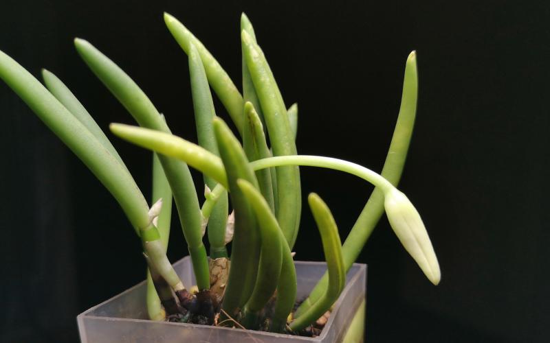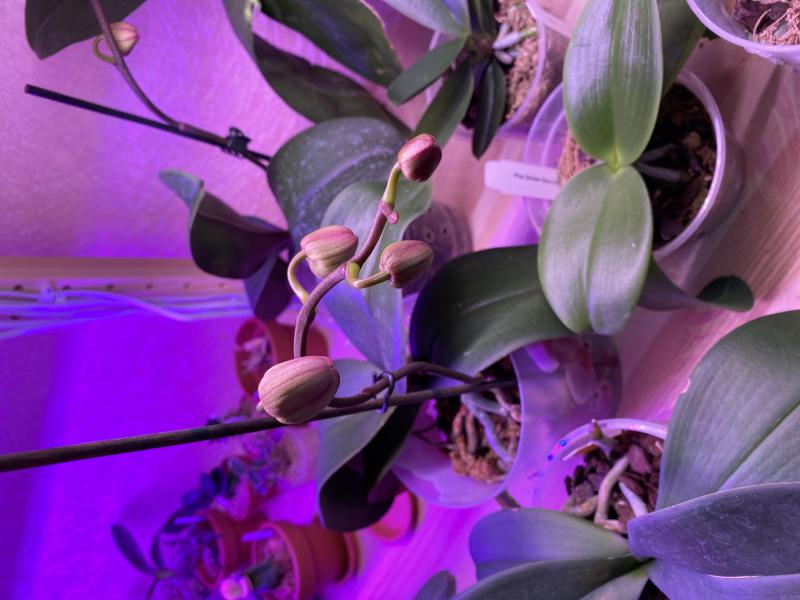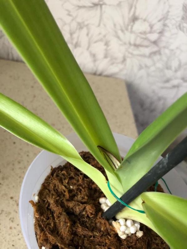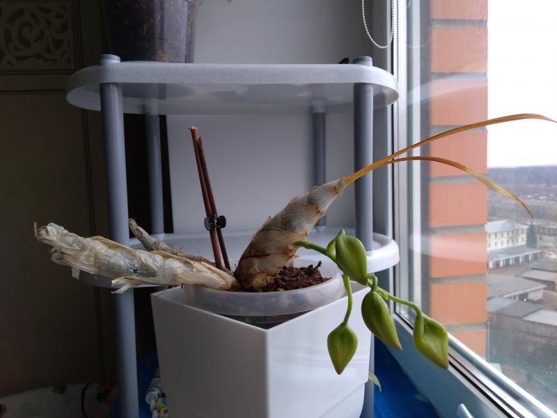 Den. Rainbow Dance `Akatsukinjan`от Мики - вчера показались цветочные почки на бульбах уже этого года ростах. Ну до чего умница. Стоит на балконе под лампами, прохладно. Похоже набухли почки др. бульбе (мечтаю)