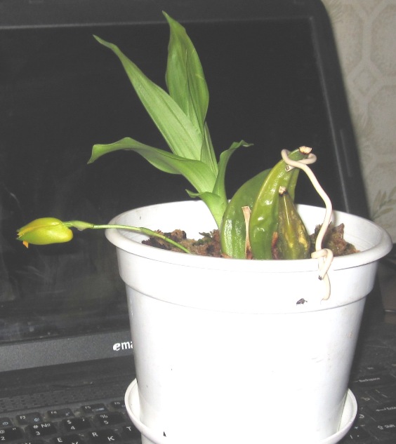 Вот мой харвей, у него всего две бульбы...... я уже две почки ему залила, так жалко, сейчас полить хотела, смотрю, а мы под прищепкой цветонос уже вырастили!!!
