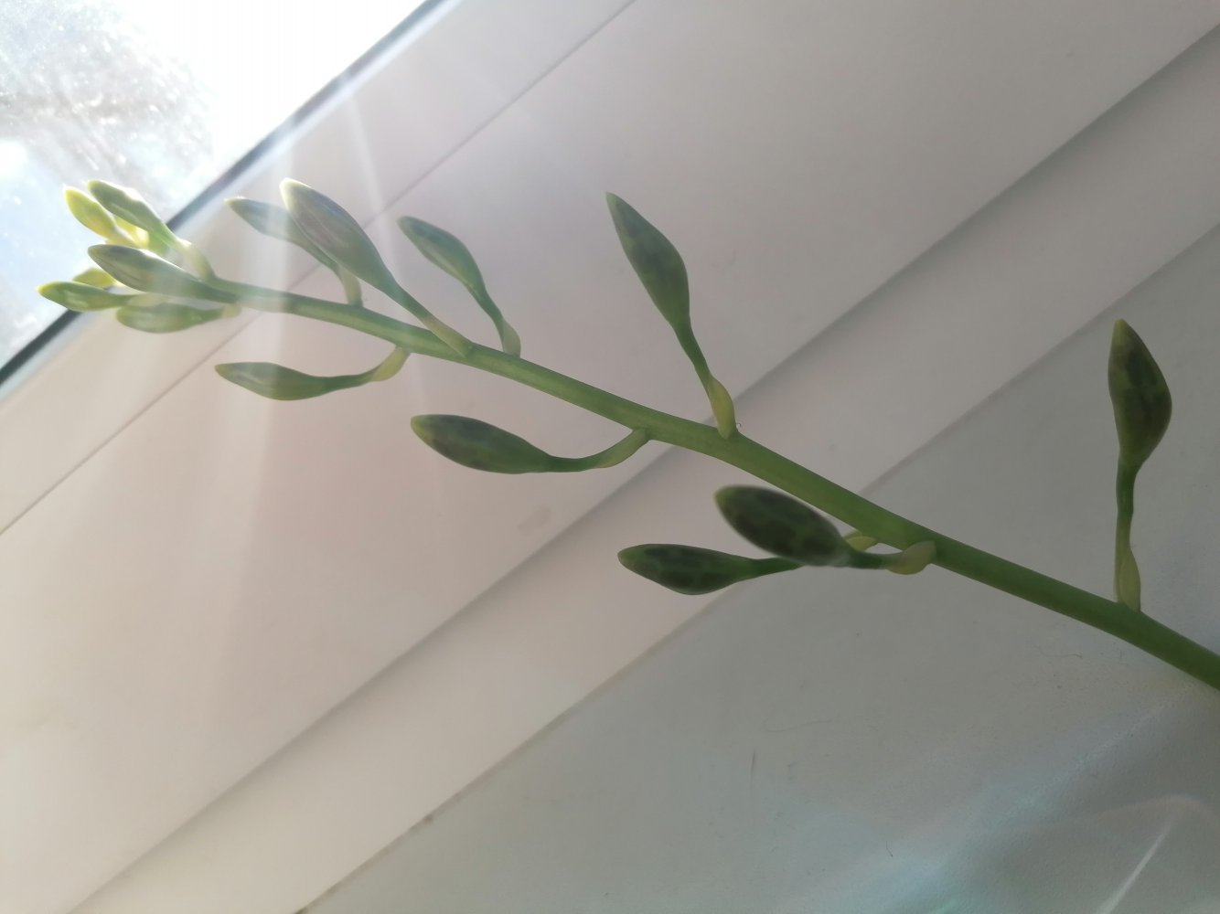 Щедрый товарищ :) выдал крепкий цветонос с кучей пятнистых бутонов. На фото не очень видно пятнышки. Для меня это первое его цветение, очень ждуууууууу :)