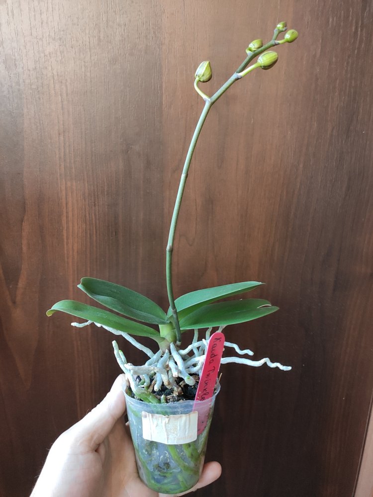 Фаленопсис Мамбо дует и окрашивает бутоны.