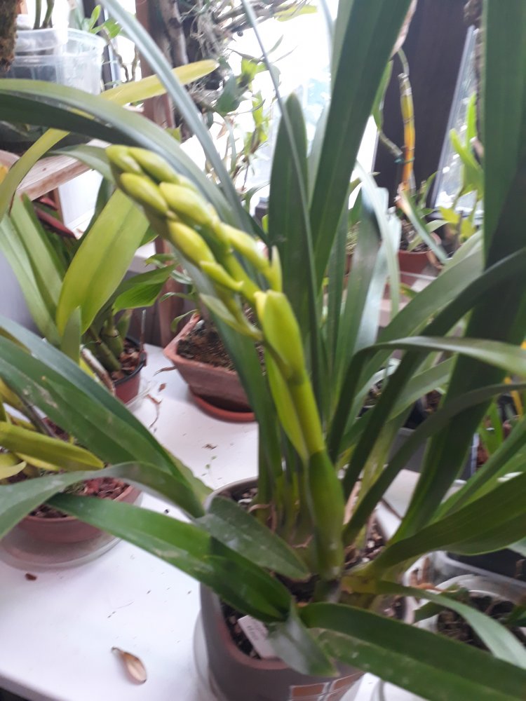 А еще вот похвастаюсь:20211218_135840.jpg ринхостилис, пока не знаю, какого будет цвета. Это растение я свма вырастила из фласки-привозили из Тайланда, в бутылочках. Прошло с того времени лет 8, не меньше. И вот-первое цветение, сразу два цветоноса!