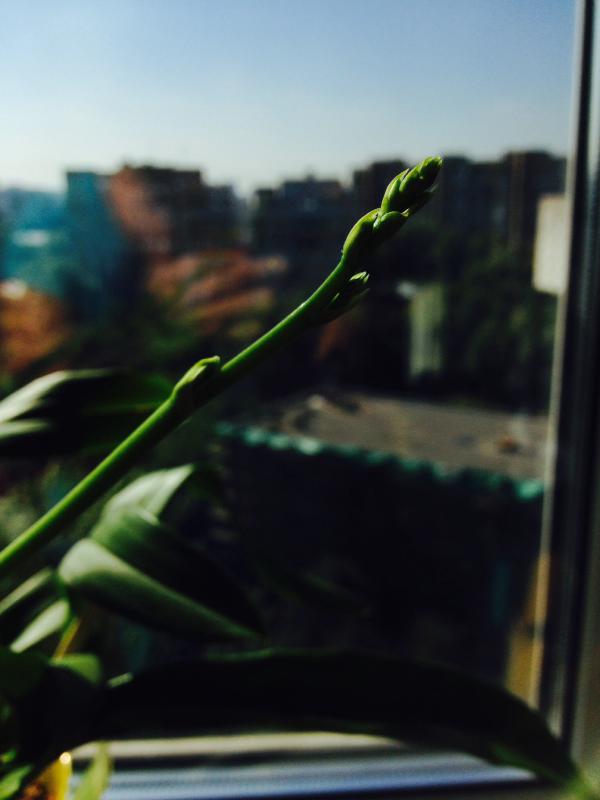 ОТ освещения (что, солнце с рассвета до 10 утра, и то не каждый день, пугает?). И почему, спрашивается, цветонос лежит на листе, над которым вылез... А так ждём-съ.