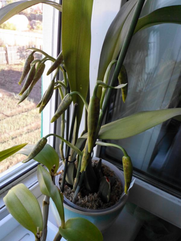 Обязательно покажу его цветение, он уже цвел в теплице, есть пеньки от цветоносов. У меня впервые, поэтому очень интересно. Растение, конечно, крупное.Rossioglossum Rawdon Jester 'Munchner Kindl- это первое цветение?