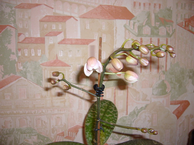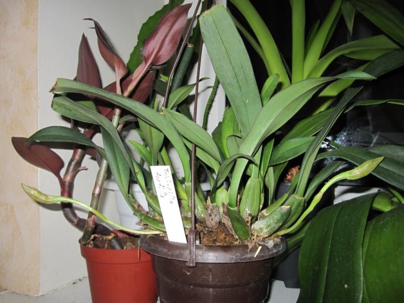 Представляете, я тут всем плачусь, что моя целогинка кристата, отсушила цветонос, паганка такая. Он у неё с конца января тормознулся, месяц назад стал желтоватым. Я от нетерпения расковыряла его, чтобы посмотреть, что там внутри. Там было три бутона: один коричневый, два ещё зелёные. Я решила, что и эти отвалятся, повесила её над форточкой и благополучно забыла. А вчера, когда решила её полить обнаружила, что бутоны то не отвалились. Интересно - они раскроются или нет?hahaha