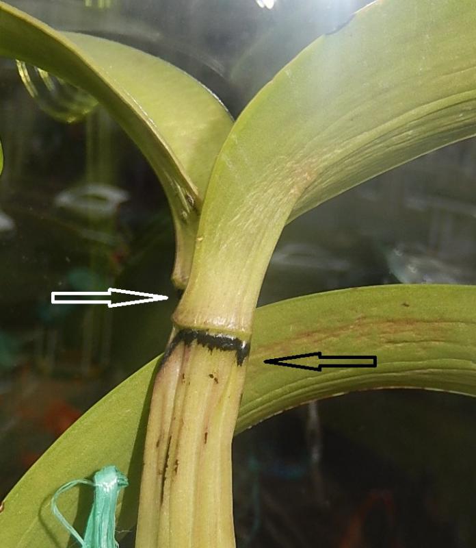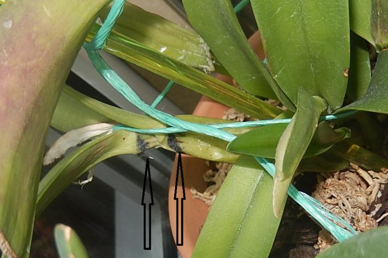 Подскажите пжлста дорогие форумчане советом. Я почти уверена, что каттлея болеет. Кратко о ней: куплена в уценке в мае 2015, двулистная, в самом начале увлечения орхами. Пересадила, поливаю раз в 7-10 дней, летом на южном окне, кормлю, люблю, но растит рОсты меньше покупных - ладно думаю адаптация идёт. В том году и в этом выдала рОстик побольше, но как только развернулся первый лист - второй уже показывается чёрный, гнилой. Внутрь водой точно не могла попасть ни при поливе, ни при опрыскивании - это мы сразу отметаем.. Обратила внимание что на старых бульбах место соединения бульбы и листьев вот такое чёрное