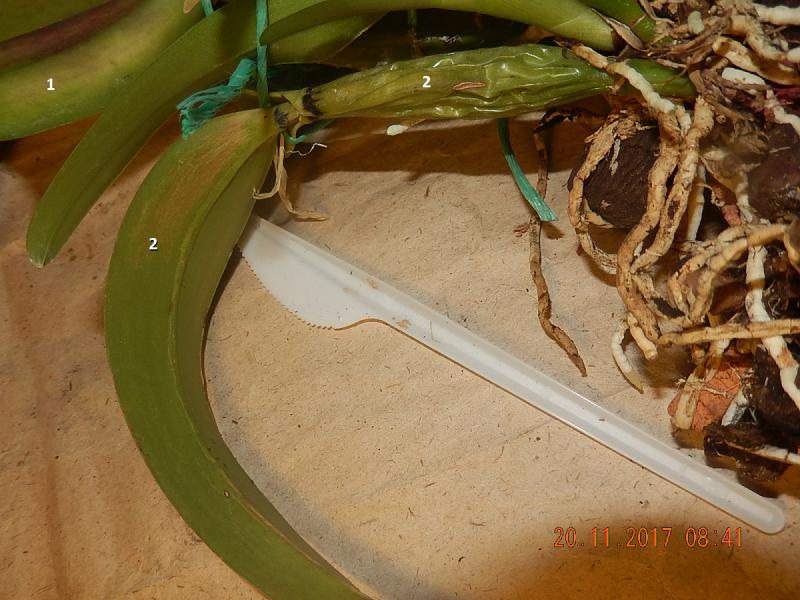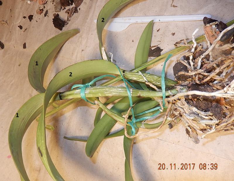 вот эти два сморщенных роста, листья у которых помечены 1 и 2 - это самые старые. Под ними видны мои росты, но видно насколько они меньше