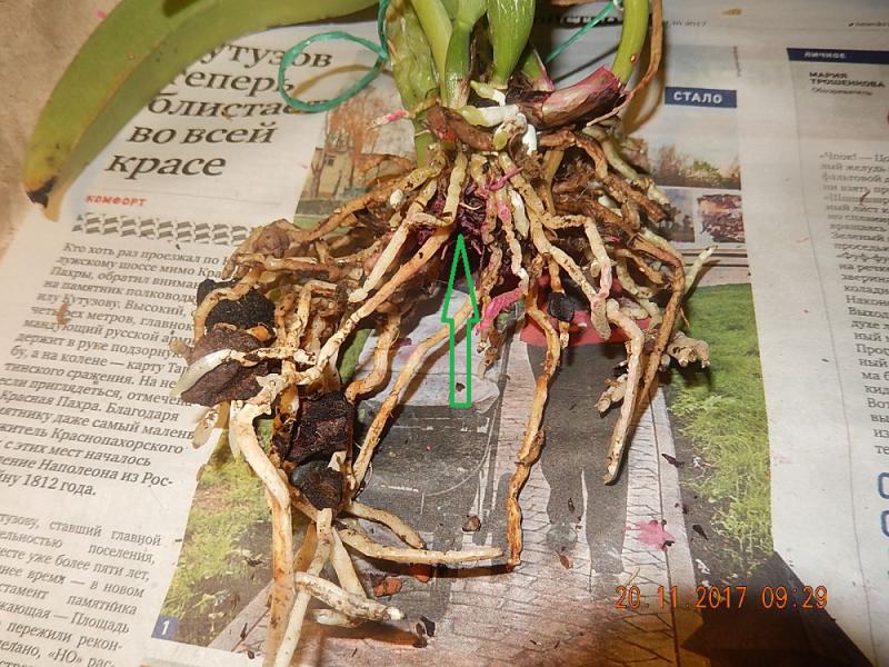 вот уже почистила, что увидела, под зелёной стрелкой - тоже уже почистила. Сейчас лежит обсыхает. Хочу посадить в новую кору+ серамис в прозрачный пластик, добавлю или алирин или гамаир. Мой бич - это полив :blush:: я принадлежу к людям что любят поливать.