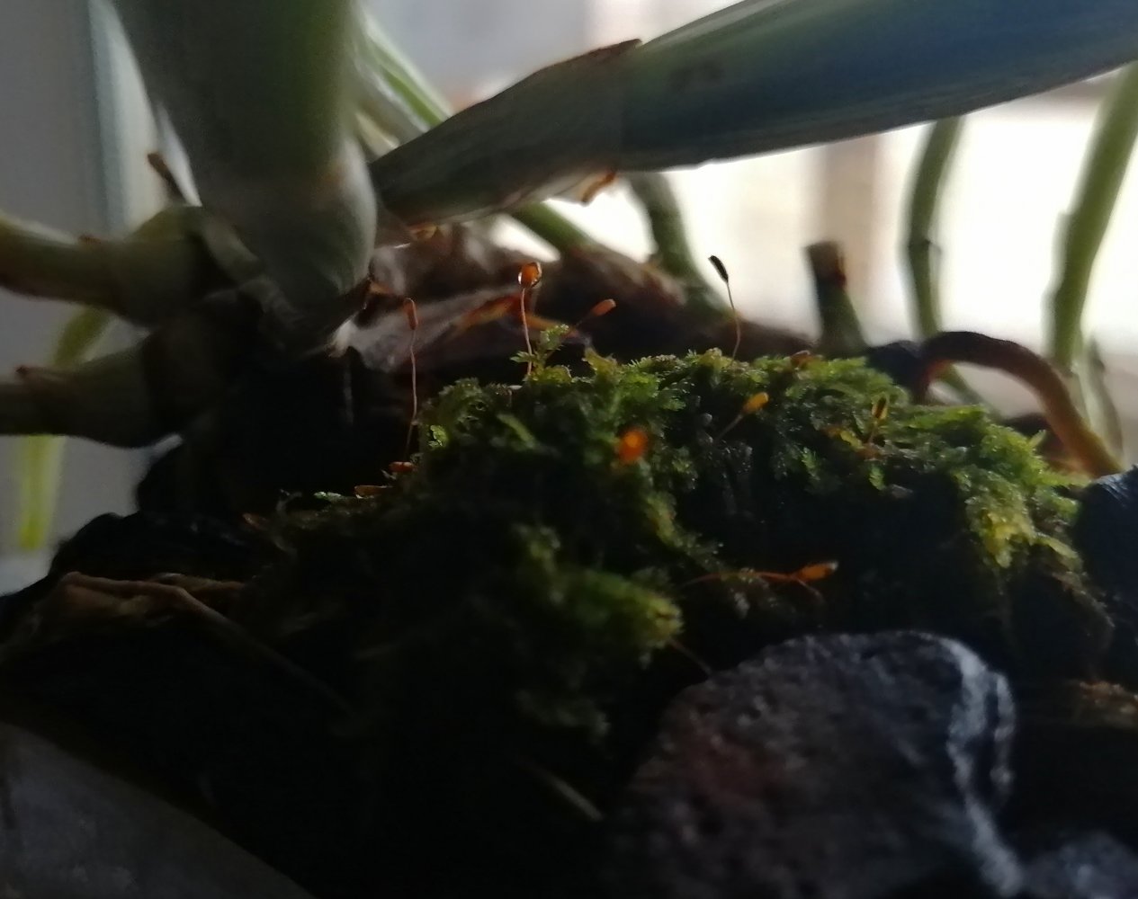 у меня пара каттлей из спеца приехала во мху.. с подселенцами.. скоро зацветут, причем в обеих катьках одинаковая "трава" растет .. уже дует беленькие бутоны@julesja, надо камеру для макро, чтоб их поймать. Вот самое получившееся фото. "цветочки" продолжают вылезать и уже не только в этой Кате. Я так рада, что мох пытается прижитьсяТемновато, конечно, но при увеличении их видно.