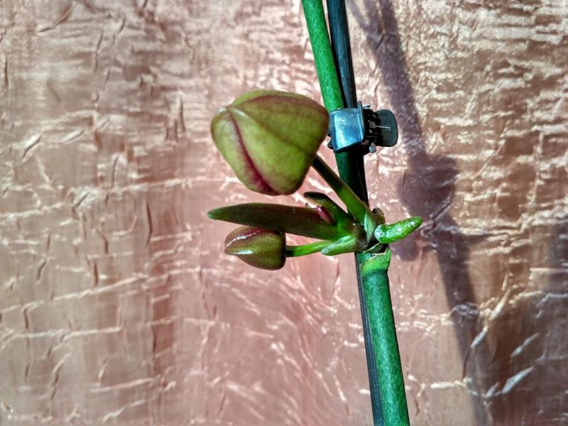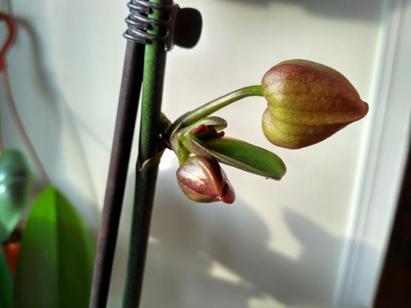 Добрый день! Каода выдала цветонос (первое цветение), но он очень тонкий- тоньше ее корешка.Я его подвязала, но он же цветок не выдержит! Чем бы его подкормить?. Растет во мхе. Спасибо за помощь