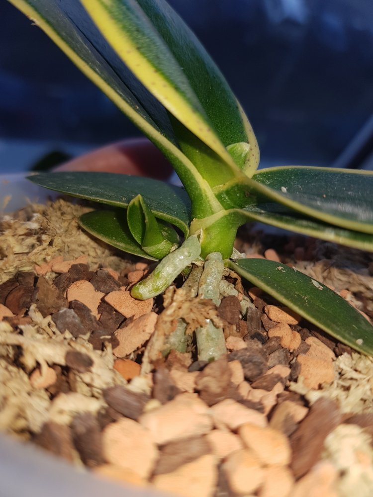 Ксюндра, я тоже думаю, что это корень. А вообще о цветоносах... Давно хотела показать. У меня Asconopsis Irene Dobkin ‘Elmhurst' растит 3ий цветонос из одного места. Сразу скажу, ничем не кормила.