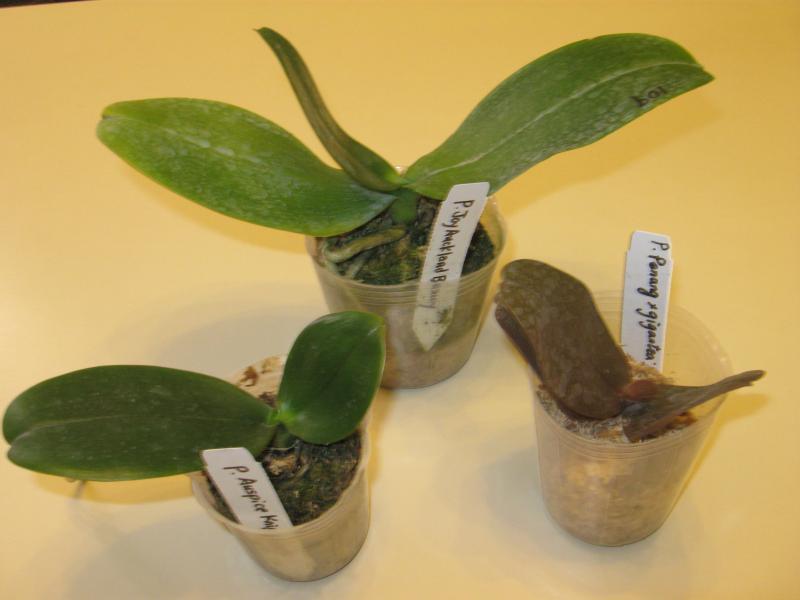Получила я вчера свои растения P.Joy Sara Lady, P.Joy Sara Nancy Lady, с виду неплохие, но с корнями беда, пришли в размере 2,5, но есть пенечки от цветоносов, будем пытаться нарастить корни: