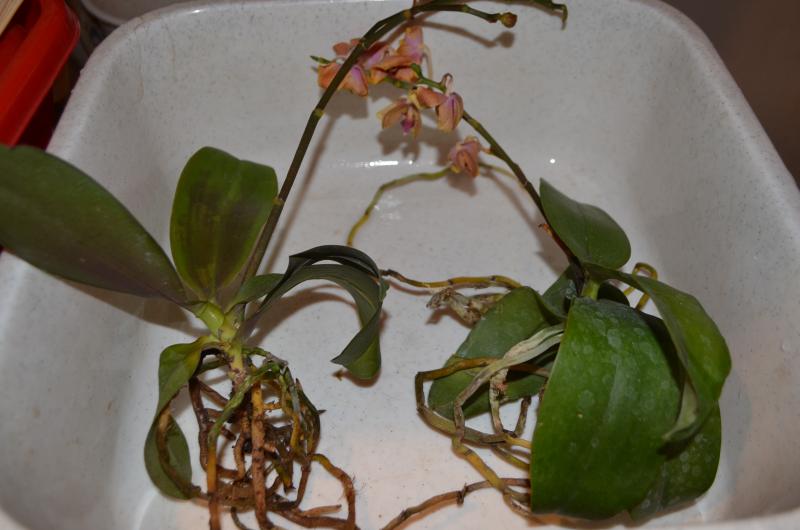 пришло взрослое растение, много корней, цветшее и проклюнулся новый цветонос.