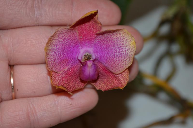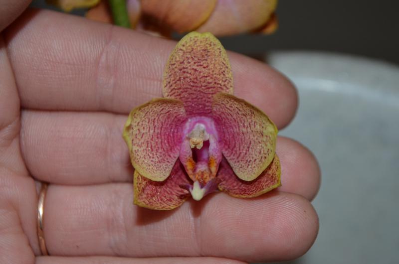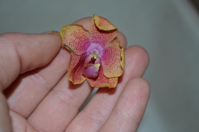 6. Dtps. Joy Green Bee Pink - размер очень порадовал, вместо 1,7 пришло цветшее растение, листья красивые. Но было несколько гнилых корней, поэтому вытащила из мха и обнаружила длинную черную гниющую шею... Мягкое срезала, сухое обработала зеленкой, надеюсь, гниль остановится.