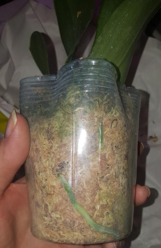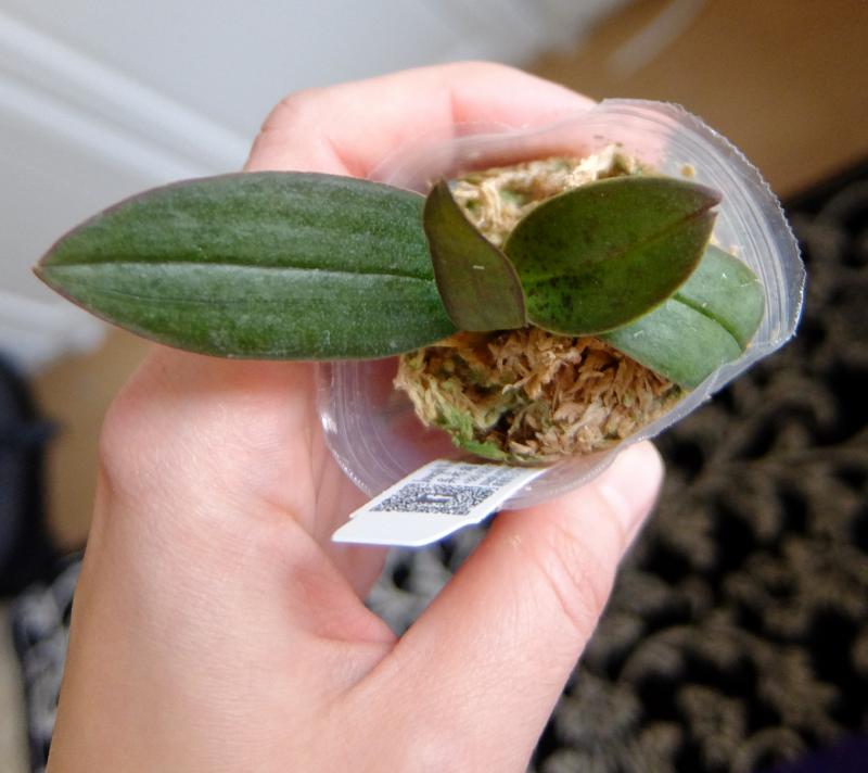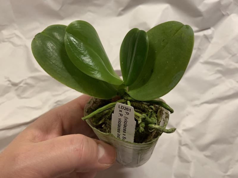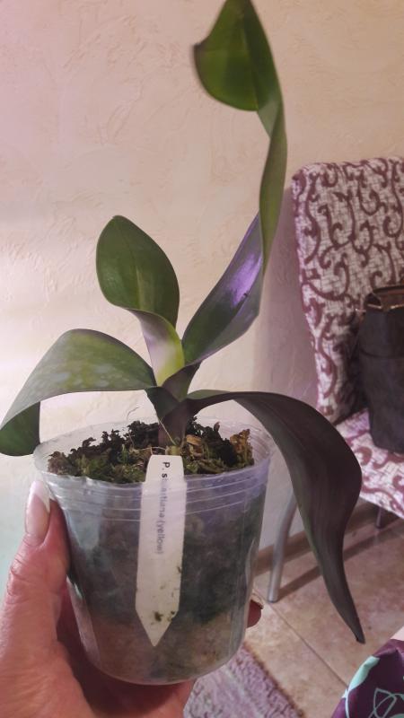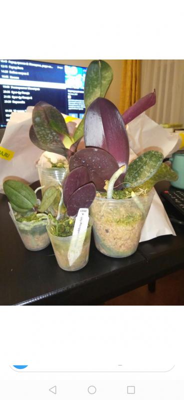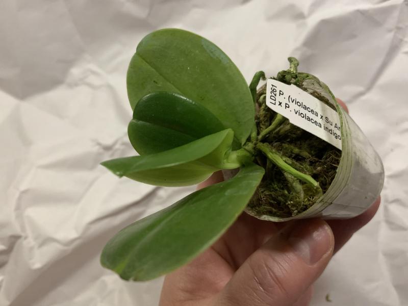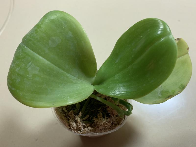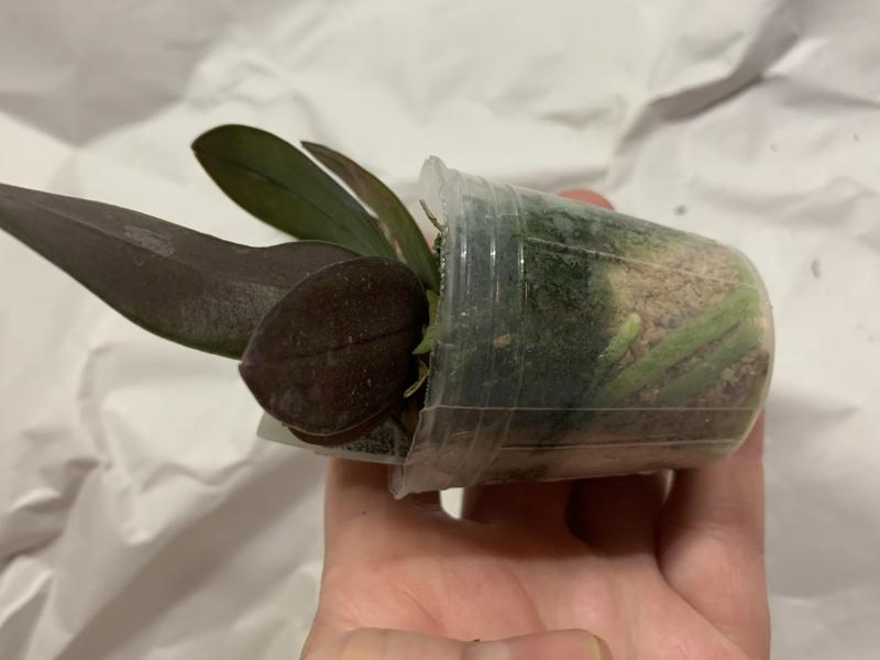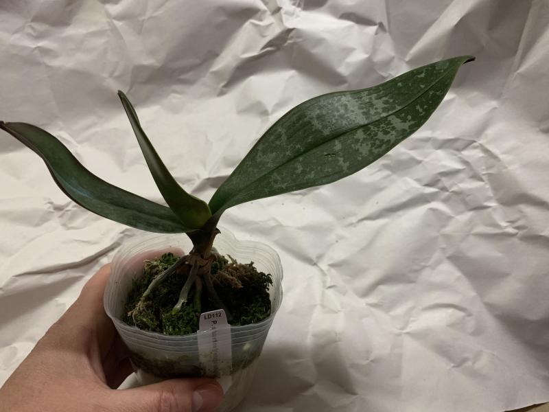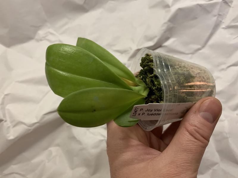 Растение пришло полноценного размера 2,5! что было приятным сбрпризом, мох был полностью сухой. В горшке имеется бирка, что немаловажно! Корней много, правда есть и неживые корни. Четыре жирных листика, вместе с растущим, размеры самого большого листа 10см-длина на 5см-ширина. Листья почти без повреждений. Также у растения виден старый засохший цветонос. Впечатления от растения очень приятные. Спасибо!Спасибо!