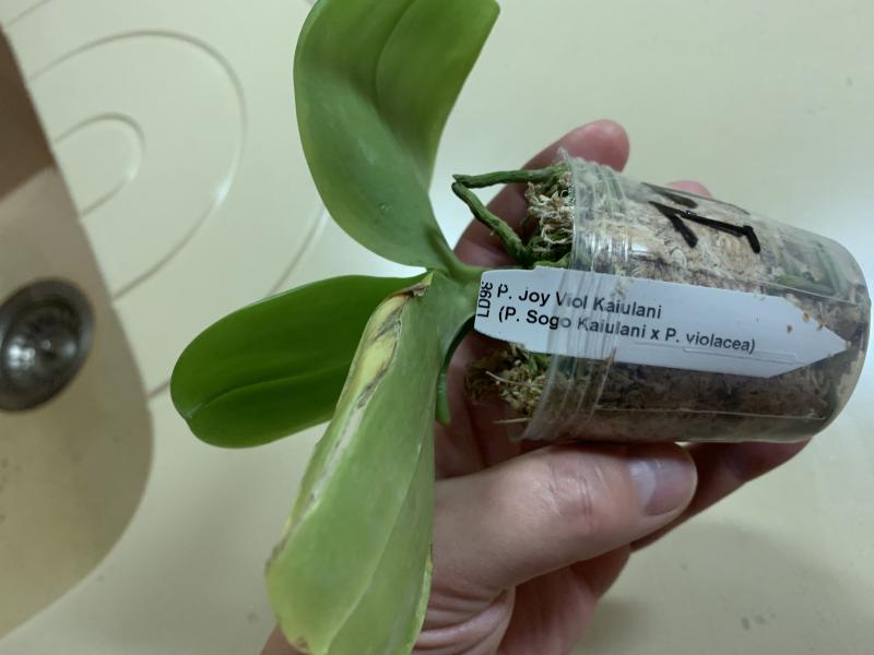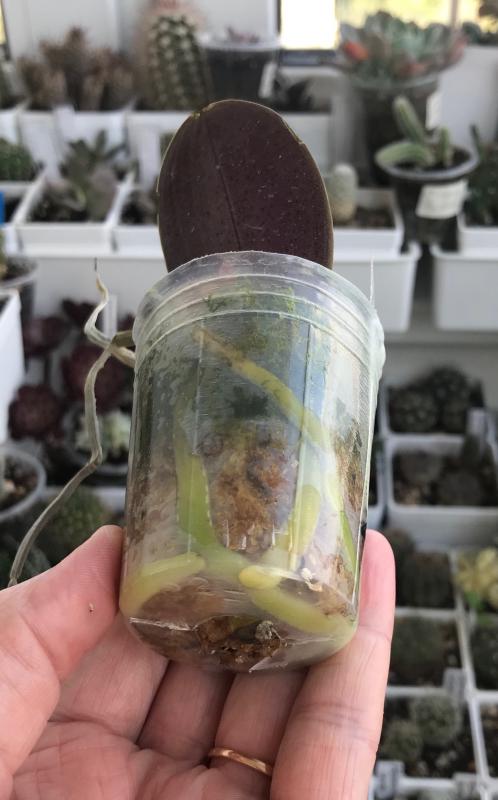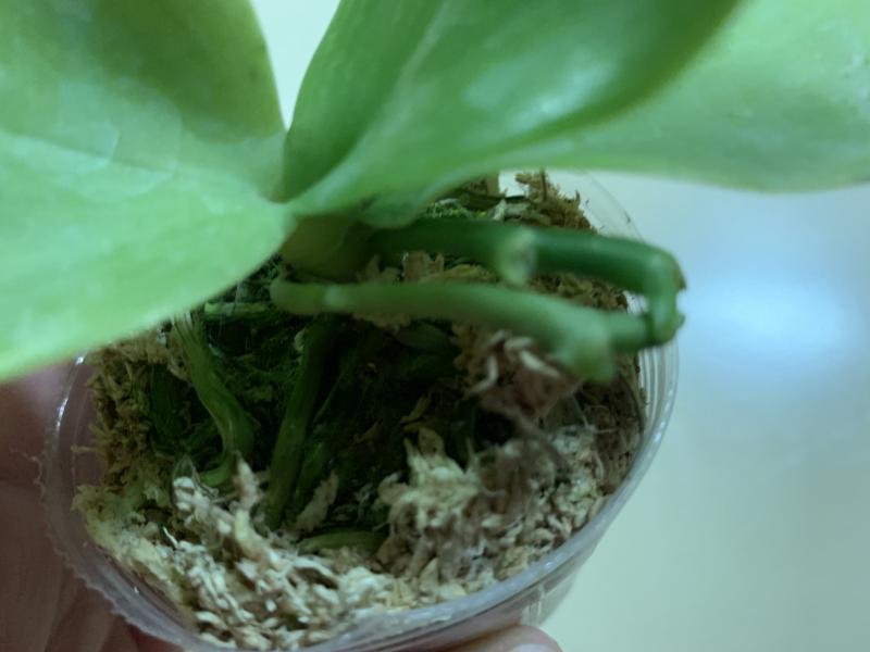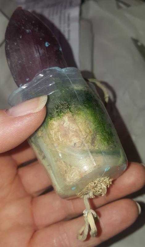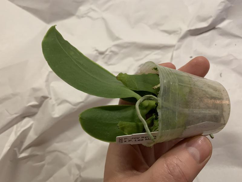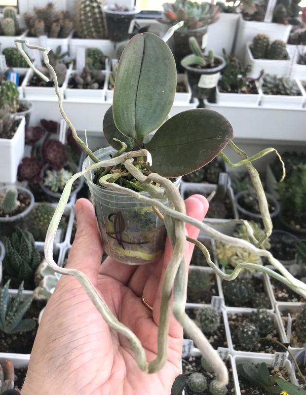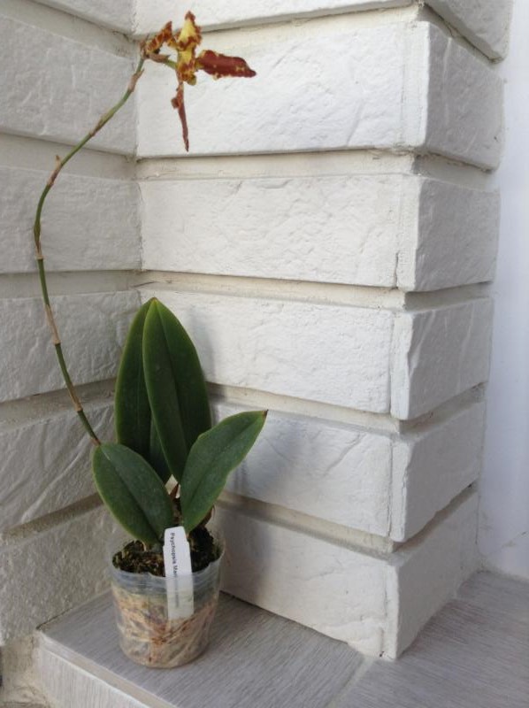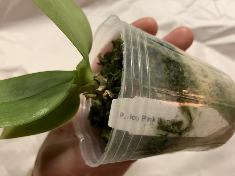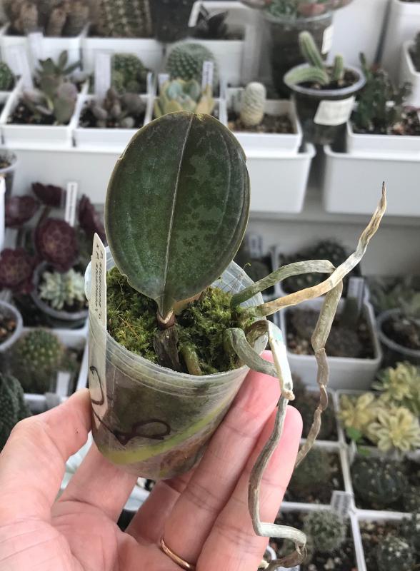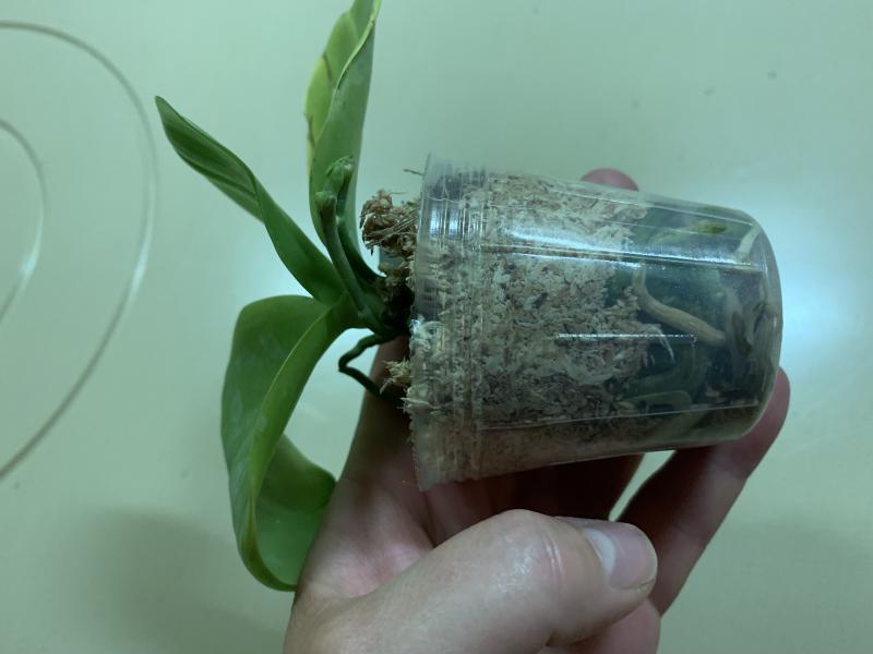 Растение пришло полноценного размера 2,5! что было приятным сбрпризом, мох был полностью сухой. В горшке имеется бирка, что немаловажно! Корней много, правда есть и неживые корни. Четыре жирных листика, вместе с растущим, размеры самого большого листа 10см-длина на 5см-ширина. Листья почти без повреждений. Также у растения виден старый засохший цветонос. Впечатления от растения очень приятные. Спасибо!Спасибо!