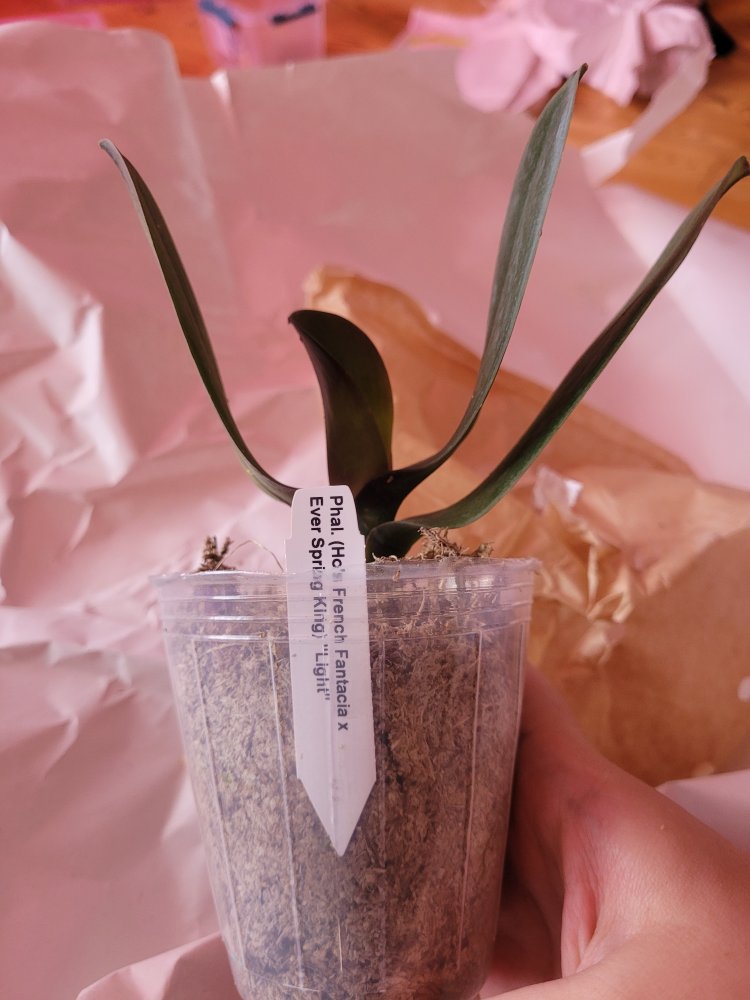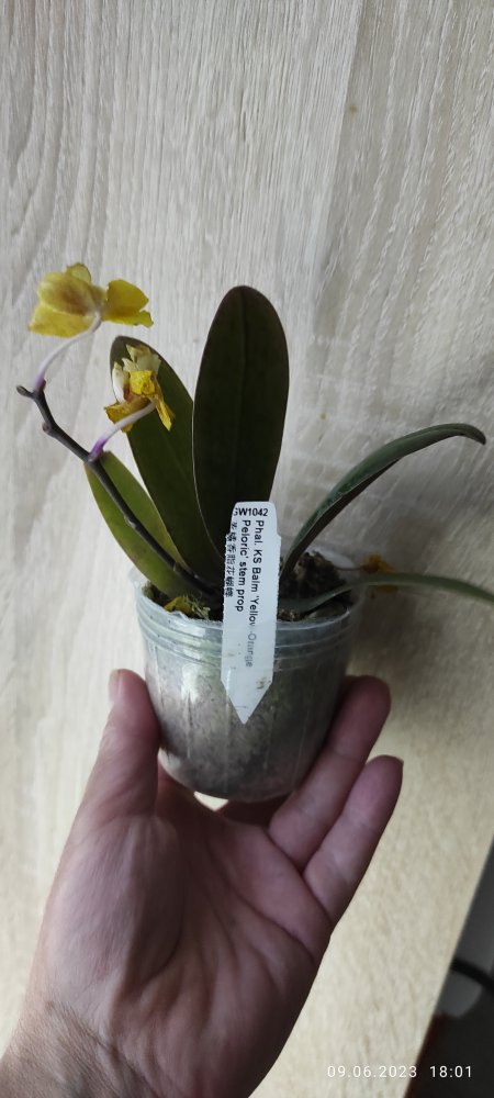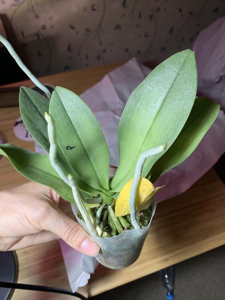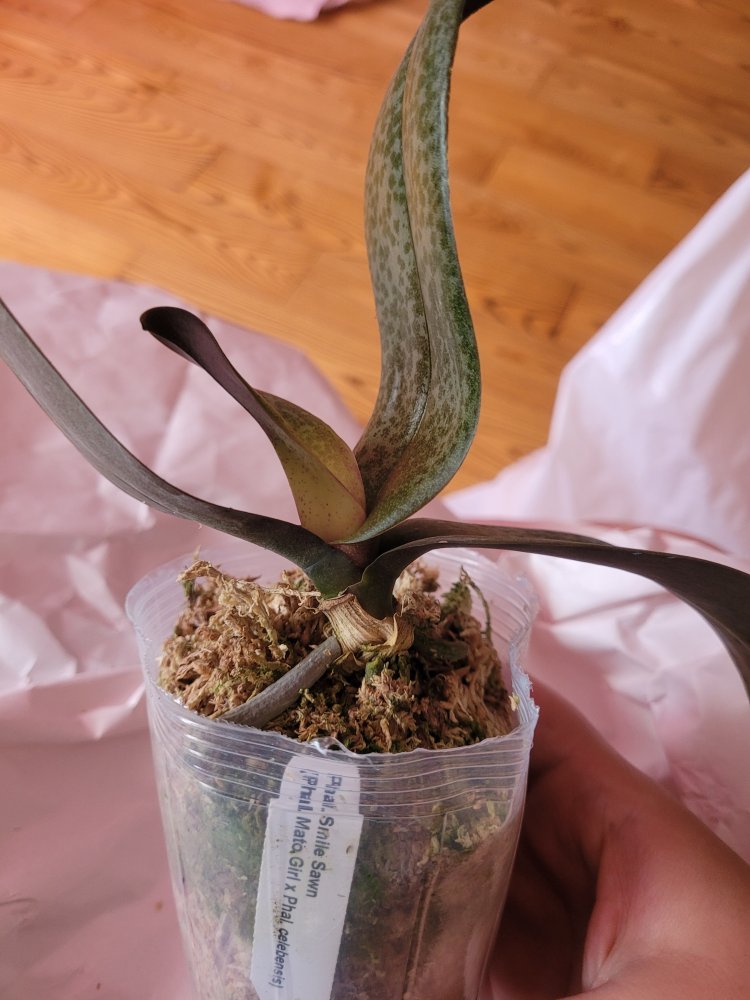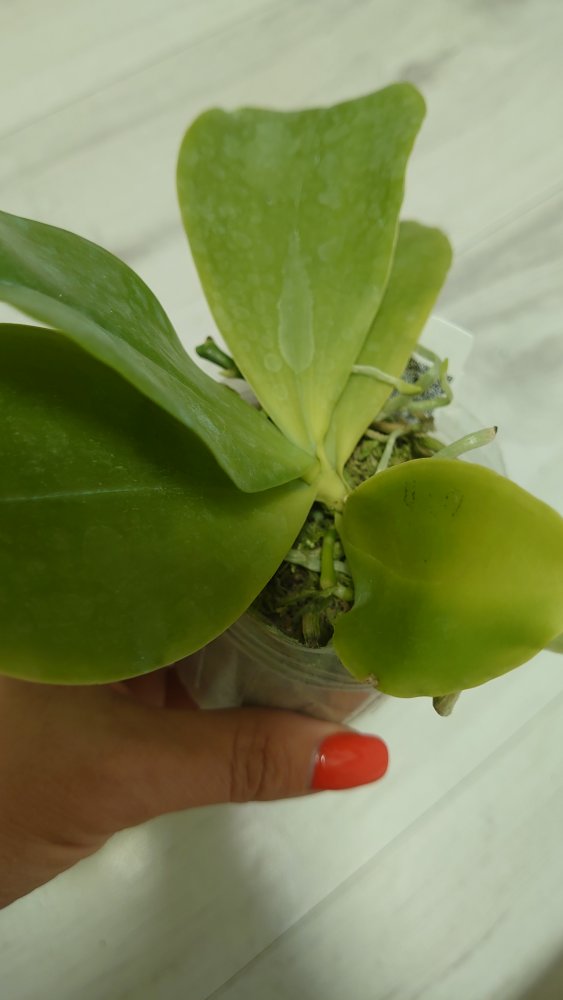 Phal. Joy Sunset Glow Получен сегодня в день смс. Молодое растение, мох умеренно влажный, корни видны, нелегалов нет, но подопревшие листья. Прям невезет. Буду надеяться, что отойдёт. Спасибо.