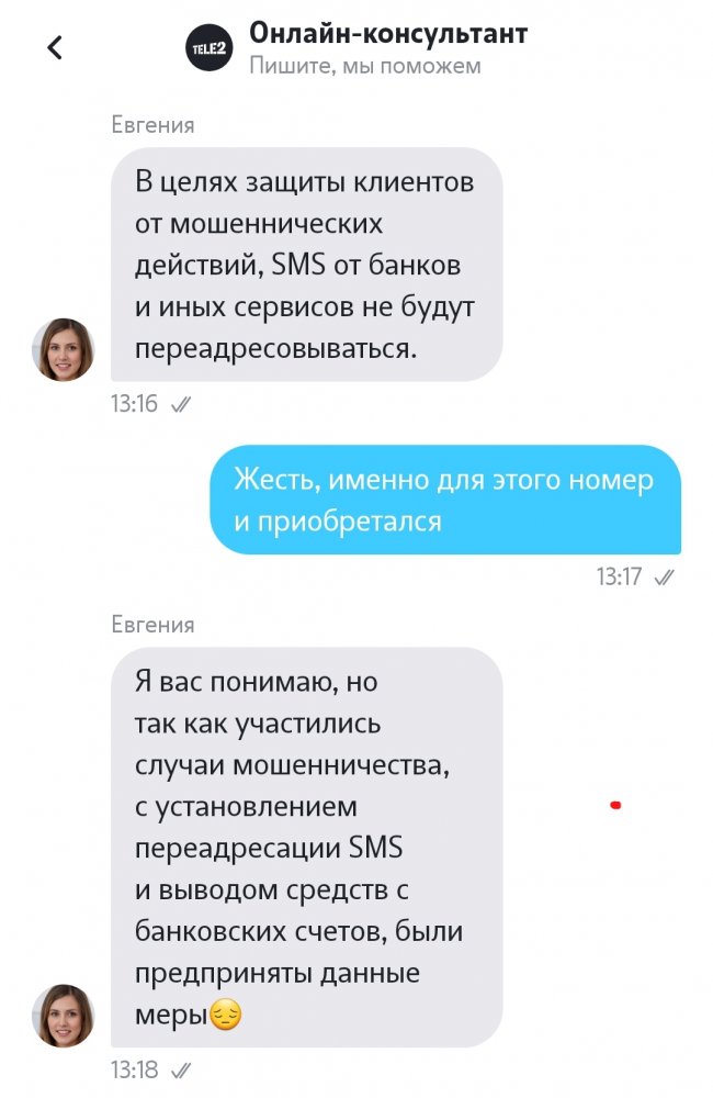 Мне тоже так говорили когда я пытался в личный кабинет банка зайти однажды. В чате сотового оператора выяснилось, что оператор блокирует смс от банков чтобы не было мошенничества. Для меня это было очень возмутительно, почему они решают какие смс мне отправлять, а какие нет. По результату надо было подтвердить личность, если номер древний, то они уточняют данные, и надо было отключить переадресации на номереБолее того, один раз даже сказали, что смс код сформирован, и не один раз, но не отправляется, потому, что..., и т.д.
