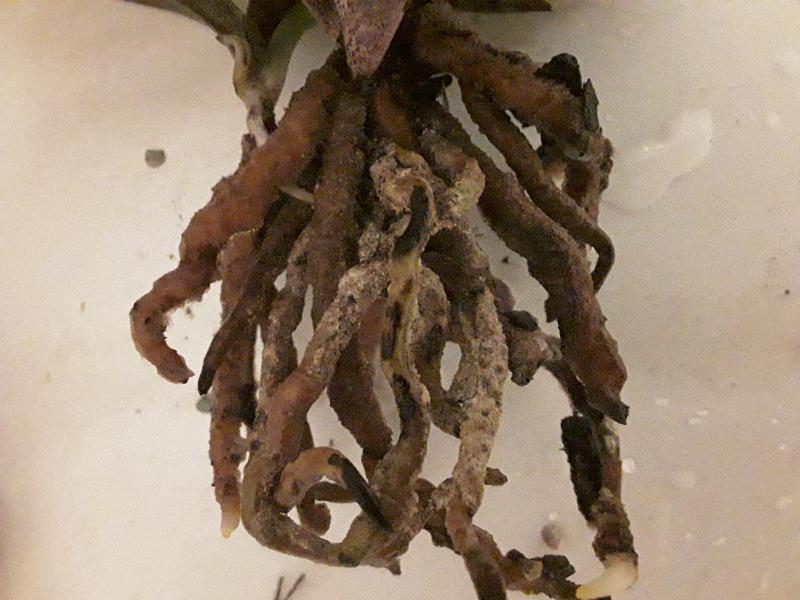 Когда впервые открыла для себя субстрат Лечуза, около 3 лет назад, информации по ее использованию особо не было, поэтому стала использовать ее опытным путем. Начала с добавок ее в субстрат к разным видовым башмачкам, и в том числе, несколько посадила практически в олну Лечузу. В составе субстратов на основе коры, Лечуза очень быстро показала свою эффективность. А вот в чистом виде все загнили. Поэтому сделала для себя выводы и отказалась от ее использования в чистом виде. За это время рос у меня один башмачек. Рос преотлично, и не трогала я его до вчерашнего дня. Т.е, без пересадки он рос около 2,5 лет. Сверху был укрыт толстым слоем мха, когда его меняла, досыпала коры поверх, поскольку корни уже поднялись над горшком. И была уверена, что он растет в обычном для меня субстрате на основе коры. Только при поливе иногда удивлялась, что это горшок тяжелый такой... Короче, вчера решила его пересадить. Каково же было мое изумление, когда обнаружила, в каком субстрате он рос все это время. Это оказалась практически чистая Лечуза, очень крупно битые ракушки и прямо несколько кусочков крупной коры. Из корней вырос целый новый "горшок" настолько плотный, что Лечуза даже не высыпалась. Осмотрев всю эту "конструкцию" не нашла ни одного гнилого корня, субстрат не разложился вообще, в идеальном состоянии... Поэтому просто поставила в больший горшок и по краям засыпала снова Лечузой, добавив несколько кусочков крупной коры. Башмачек этот - гибрид микрантума на деленати. Так что подумаю на тем, чтобы снова вернуться к экспериментам с Лечузой)).