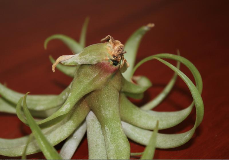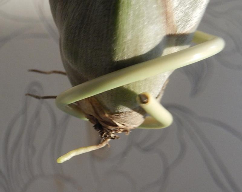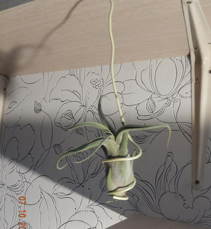 Светило, Светлан, мне кажется он уже отцвёл, вон сухая чешуйка ещё держится, остальные просто уже осыпались и к тому же детка уже большая. Но ведь я могу и ошибаться, не спец совсем:girl_brainy: А где у вас она находится? У меня именно эта на скрученной проволоке висит, только не здесь и фото неочень удачное, но там где она уже света нет, "народ" (орхидейки) уже спит.