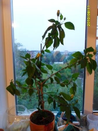 Девочки гибискусы это листопадное растение, и то что листья желтеют и опадают это нормальное явление, ни смог ни жара тут ни причем, а старички имеют свойство просто так дохнуть отжив в квартире несколько лет проверено на собственом опыте. Вообще гибискусы подходят даже для кухни они легко переносят газ копоть и т.д. так что городской смог им фиолетово. Для того чтоб он рос и не дох его корневой системе нужен горшок больше его кроны, так вот представьте как это будет выглядеть, поразводив их несколько лет, я их просто раздала и переключилась на орхи. А еще меня раздражало безконечно опрыскивать их от клеща, он просто не переводился.
