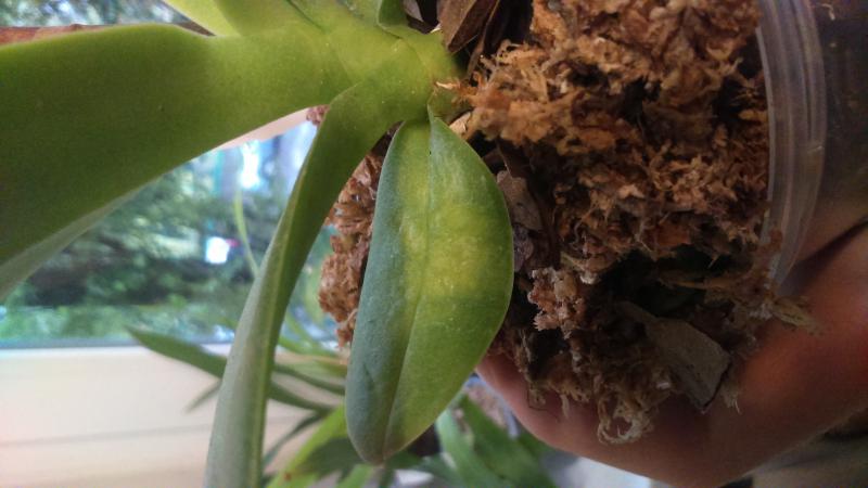 Да, такие же пятна у меня на асконопсисе с охоты 2014го. Листа два пострадало, я лечила растение, сначала вроде подсохли до тонкой пленки. Все было хорошо. Но потом видать, я как-то расслабилась и полила больше чем надо, либо опять стресс был у растения и пятно увеличились. Пришлось опять обрабатывать в срочном порядке. Но вроде тьфу-тьфу пока дальше этих листов не пошло. Хотя могу предоположить, что рано или поздно эти листья все равно отомрут.