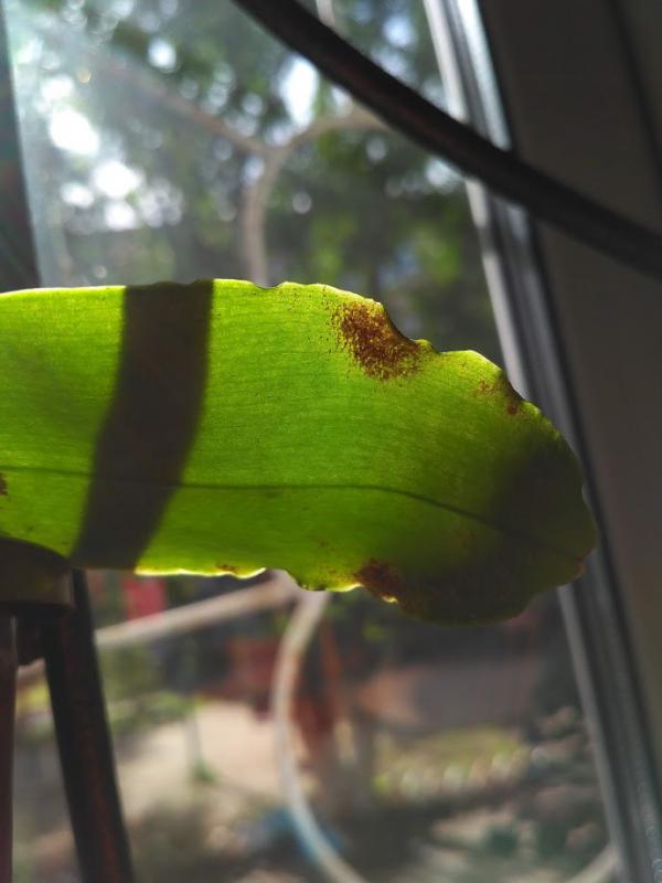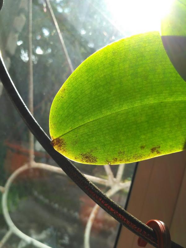 Помогите, пожалуйста, победить вот этот ужас. Вчера убрала у этой орхидеи желтый лист, а сегодня увидела, что другой с такими ужасными пятнами. Вроде вчера их вообще не было