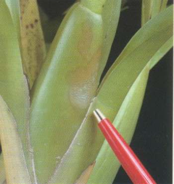 Итак. У пафиопедиумов новые росты недоразвиты, растут буд-то слипшиеся. Центральные листы тоже слипаются. При этом можно различить характерный запах - не грибами, не гниения. Потом, по этому запаху и определяла. Был даже фаленопсис, у которого пахла только часть одно корня...