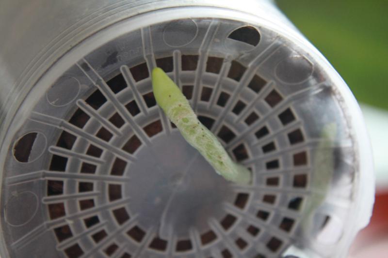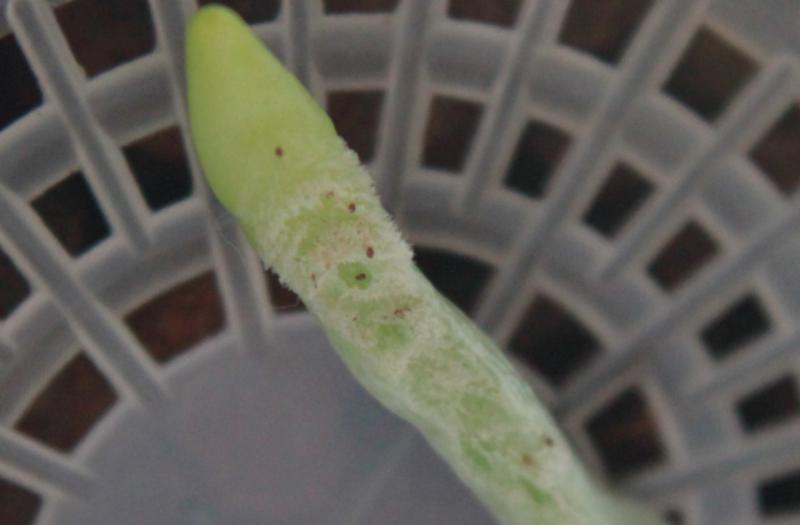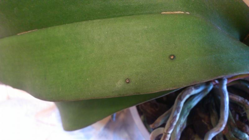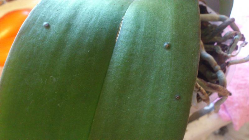 отрос новый лист на орхидее, вот такой ... пупыри яркие , коричневые, самые крупные выпуклые , это болезнь или