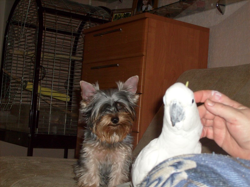 Я с Ропунем вообще не могу смотреть ни фото ни видео других попугаев. Сразу выглядывает из клетки внимательно через плечо - на кого я это там смотрю?!