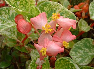 Бегония Всегдацветущая вариегатная - получила свое название за то, что цветет и летом, и зимой. Это полукустовидное растение с голым стеблем, листья темно-зеленые, гладкие, глянцевые. Цветы разнообразного оттенка в зависимости от вида.