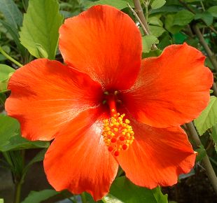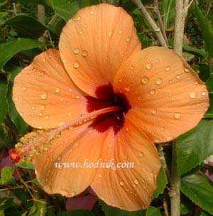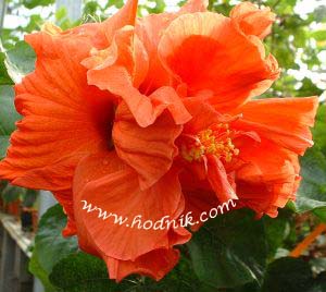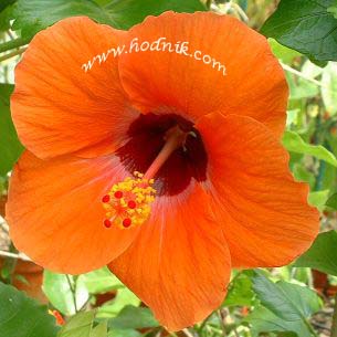 Гибискус оранжевого цвета с бордовой серединой, простой цветок среднего размера 7-10см. Компактный куст, некрупные темно-зеленые листья. Цветение обильное с ранней весны до поздней осени. Один из любимых неприхотливых сортов!