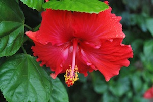 Очень красивый яркий гибискус, цветок обычный(не махровый), со слегка волнистыми краями.