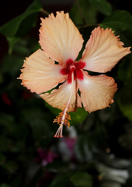 Розовый гибискус, цвет переходит от более насыщенного в середине к бледному по краям, очень эффектный.