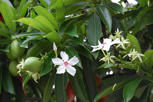 Цербера одолламская - род вечнозелёных деревьев и кустарников семейства Кутровые (Apocynaceae). Листья продолговатые, цветы трубчатые, отличаются от предыдущего вида желтой серединкой. Ареал рода — тропическая Азия, Австралия, Мадагаскар, Сейшельские острова, острова на западе Тихого океана.род назван именем чудовищного пса греческого мифологии Цербера из-за своей токсичности. В Англии известно как "дерево самоубийц". Все части растений содержат церберин — крайне ядовитый гликозид, применялся отравителями, его добавляли в пищу жертвы, так как его аромат мог быть замаскирован специями. Токсин также печально известен, что его не обнаруживают при вскрытии.