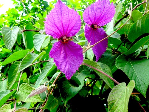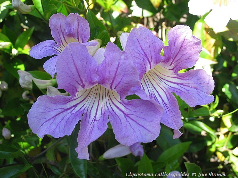 Клистома каллистегиевая или повойная - растение из семейства Бигнониевые(Bignoniaceae). Вечнозеленое вьющееся растение, которое восхищает своей блестящего зеленого цвета листьями и редким цветом цветов в форме трубок: фиолетово-розовый, с оттенком синего, с контрастным желтым зевом. Цветет на протяжении всего лета. Растения нуждаются в хорошо дренированной почве и полутени летом по крайней мере в начальный период жизни. В жаркую погоду их надо обильно поливать. Им нужна опора для роста. Побеги могут быть загущенными и требовать прореживания. Его надо проводить сразу же после окончания цветения. Размножают полуодревесневшими черенками, взятыми весной. Очень редкая обильно и красивоцветущая лиана.
