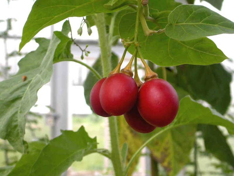 Цифомандра, Томатное дерево или Тамарилло - плодовое растение семейства Паслёновые. Это небольшое вечнозелёное дерево или куст высотой 2—3 метра с крупными, овальными, блестящими листьями. Цветки розовато-белые, ароматные. Живёт обычно 15 лет, в плодоношение вступает на второй год. Плоды тамарильо — яйцевидной формы ягоды длиной 5—10 см, растущие гроздьями по 3-12 штук. Их блестящая кожура твердая и горькая, а мякоть имеет кисло-сладко-соленый вкус, чем-то напоминающий вкус томатного сока, но при этом обладает характерным ароматом тропических фруктов. Цвет кожуры может быть оранжево-красным, жёлтым, встречается и фиолетовая окраска. Цвет мякоти обычно золотисто-розовый, семена тонкие и круглые, чёрные. Плоды напоминают длинноплодные томаты, поэтому испанцы и португальцы, впервые побывавшие на родине тамарильо, окрестили его томатным деревом. В нашей стране о помидорном дереве не знали ничего. Одним из первых завез его в Россию из Италии А.М.Горький. А после ботанических экспедиций в Южную Америку с этим деревом познакомились уже и специалисты. Сходство с популярным нашим овощем заинтересовало любителей комнатного растениеводства, многие захотели иметь в своем мини-саду это оригинальное растение.