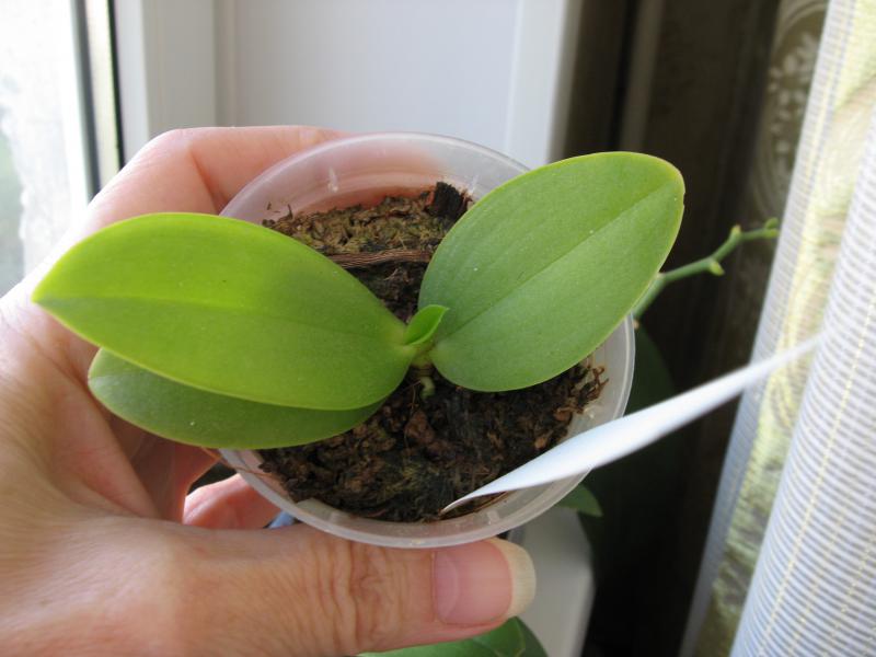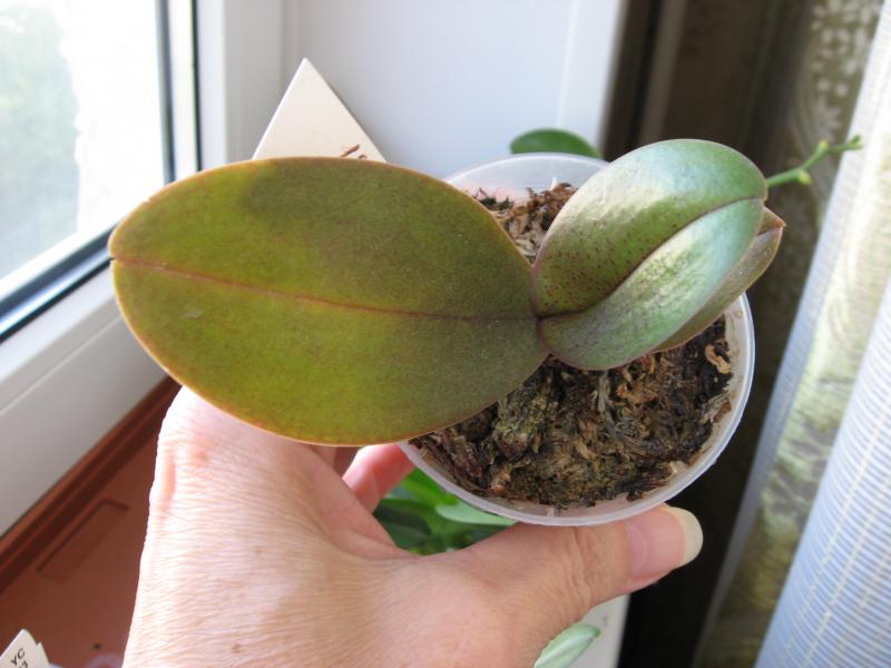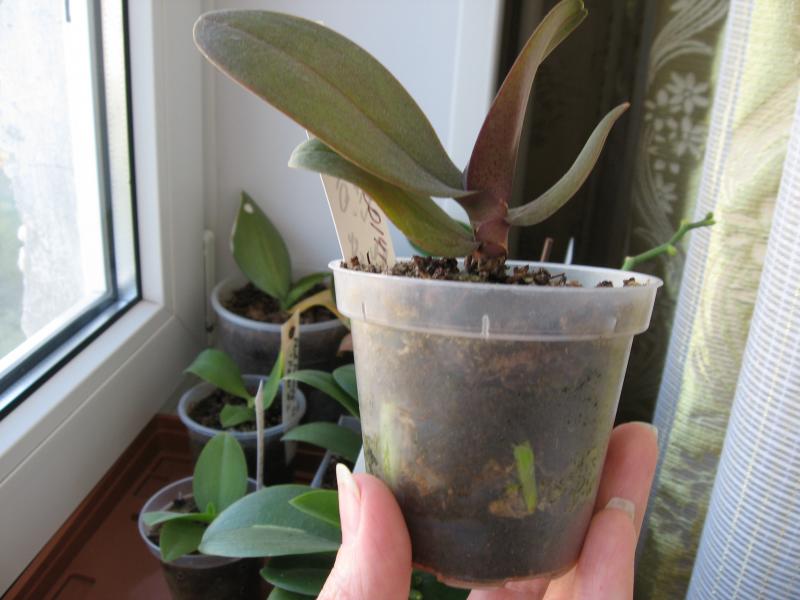 Это Allura, был получен маленький P.Little Lisa, сейчас он уже стал больше в два раза, оброс корнями, скоро буду переваливать в больший горшок. А это P.Tying Schin Beagle "Peter" x Phal.Ld"s Bear King