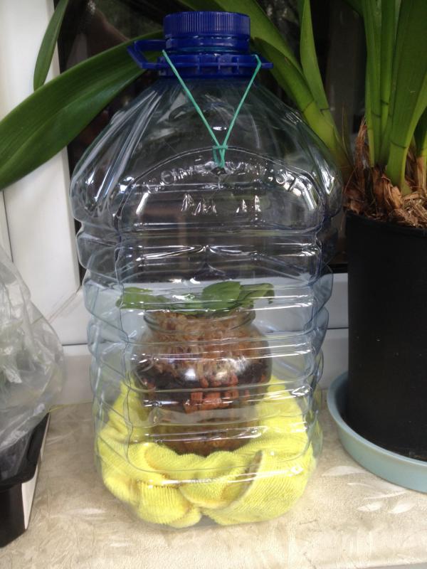 Убирайте этот хвост. Корни полезут выше, где лист. А этот хвост - лишний шанс загнить. Я бы поместила над водой, без погружения, и накрыть с проветриванием, для сохранения влажности. Но срез предварительно очень хорошо просушить (сутки-двое).
