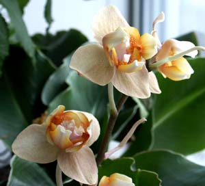 Расцвел,наконец,цимбик из Ватерорхидс.Оказался,правда,не тем кого заказывали,но все равно очень миленький. Скорее всего это Cym.kanran.