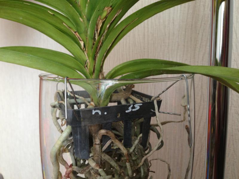 Медовая, ну вообще-то можно и шлангом пользоваться для слива, вот как из аквариумов воде сливают... На самом деле на заре цивилизации, то есть увлечения вандами, росли у меня 2 штуки в вазах. С первой кончилось печально для меня - ваза была из такого тонкого стекла, что просто треснула в руках и порезала ладони и пальцы... Ванда, тьфу-тьфу. цела осталась... Вторая имела корней немного и вазу было для нее найти легче, вот и росла дальше. Однако в один прекрасный день решила я ту вазу помыть. достала ванду, посмотрела - а у нее корней вполовину меньше, чем у тех, что с голой корневой. И вид у них не такой живой, и растущих кончиков тоже нет... В общем, помытая ваза стоит с тех пор отдельно. а ванда живет отдельно, и радуется жизни... Насчет вентилятора... Знаете, если Вы приобретете ванду и она у Вас зацветет хотя бы в первый раз, Вам однозначно захочется еще... Выбирать надо будет между местом для новых ванд и проводами от вентиляторов... так что не заморачивайтесь, один хороший вентилятор точно пригодится. но на всю компанию. А для ванд в вазах надо просто будет очень тщательно соблюдать режим полива и ориентироваться на малейшие ньюансы погоды - тепло - прохладно, солнечно - пасмурно, неделю дождей не было или три дня льет не переставая... Надо будет научиться по состоянию корней определять - пора или не пора поливать. И еще - верхние корни будут пересыхать, а нижние, если их много, будут оставаться влажными, это неизбежно. А если ждать. пока высохнут нижние, могут сильно закуклиться растущие отросточки на верхних корнях... Надо будет опрыскивать верхние и при этом следить, чтобы опрыскивание было легким и вода не стекала на нижние... Так что не все так просто...
