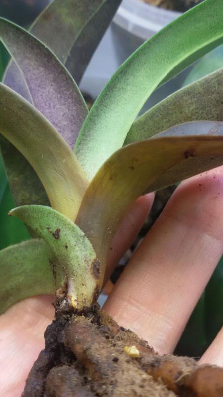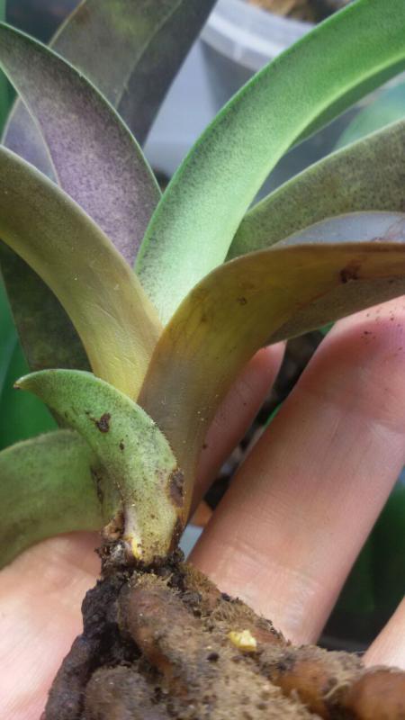 Homyacha, все Брахипеталлумы, к которым относится и Конколор, очень склонны к загниванию. Особенно осторожными нужно быть в осенне-зимний период, когда даже единичное попадание воды в центр розетки или в пазухи листьев, которое было оставлено без внимания и вовремя не высушено, точно приведет к гнили. По той же причине может возникнуть и бактериоз, и растение полностью погибнет за считанные дни. Даже в летний период следует поливать Брахипеталлумы так, чтобы вода попадала только на грунт. Листья можно протирать очень сильно отжатой ваткой... Если еще опыт в выращивании именно данной группы башмаков недостаточный, лучше перестраховаться и не устраивать никаких "душей". В случае возникновения загнивания единственный способ свести ущерб к минимуму - как можно быстрее отрезать все пораженное гнилью, иначе растение может погибнуть полностью. Но есть у этой группы и свои плюсы - они очень хорошо дают деток, чаще сразу несколько, и все очень быстро растут. Даже если у Вас материнское растение полностью погибло, но осталась маленькая детка - при правильном уходе она имеет все шансы вырасти во взрослое растение, в то время, как другие Башмаки в такой ситуации растут очень плохо. Еще у этой группы корни даже у сгнившей розетки не отмирают сразу, а еще в течение пары лет могут служить растению, даже дать прикорневых деток. Поэтому их нужно стараться сохранять.