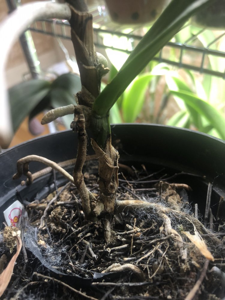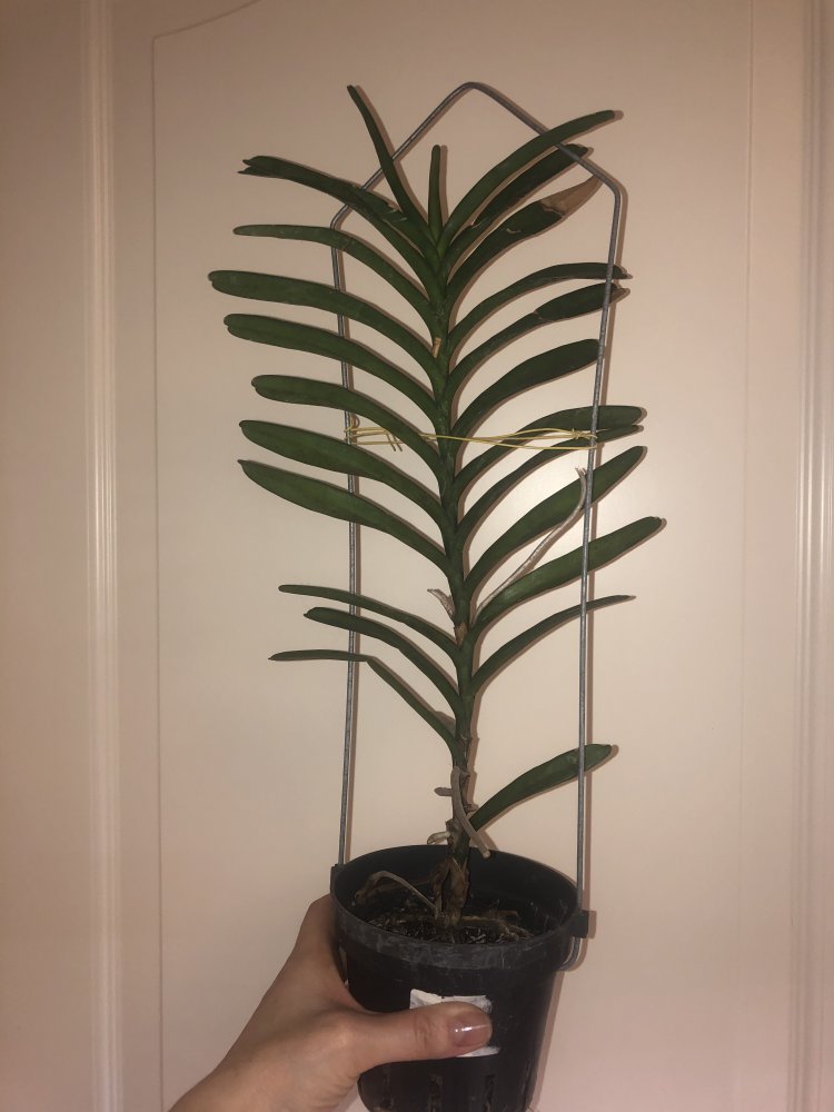 Хорошо,что у неё есть корешки снизу,они уйдут в субстрат,и не надо будет думать над дополнительными креплениями.
