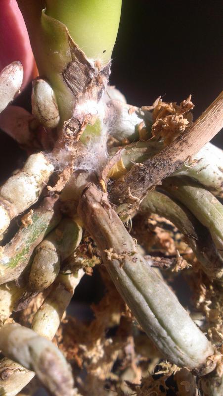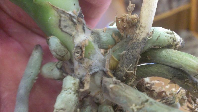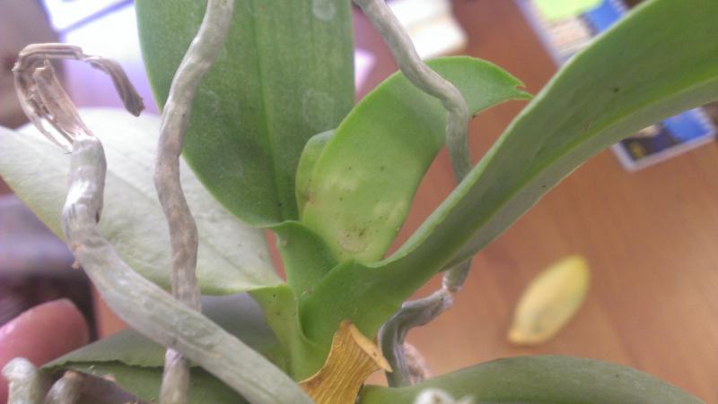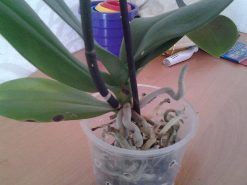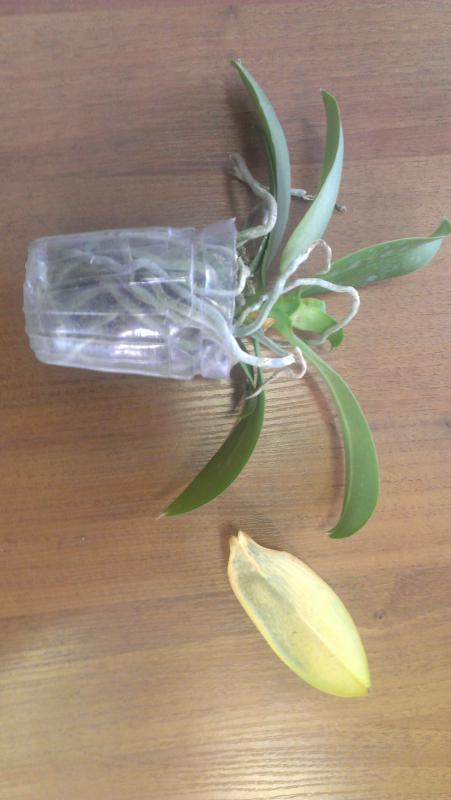 Первый фалик пришел потеряв в дороге один лист, странно то, что не нижний, а второй снизу. Такой же лист с другой стороны тоже болтается и чуть еле желтее, чем остальные...Может быть такое? На первый взгляд корни в средне плачевном состоянии... снаружи есть живые, внутри все погибли.