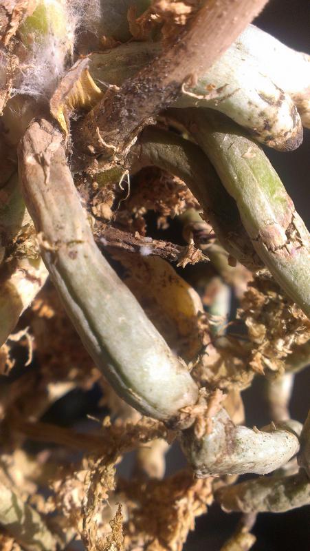 На одном похожи на заломы из-за потери тургора, но с нижней стороны и уже темнее чем остальной лист