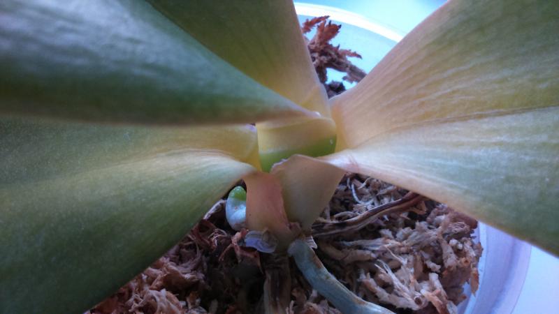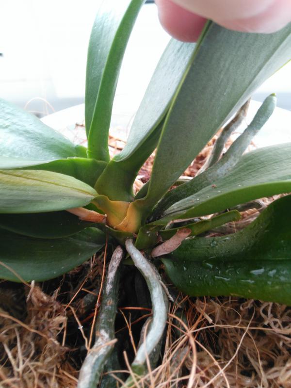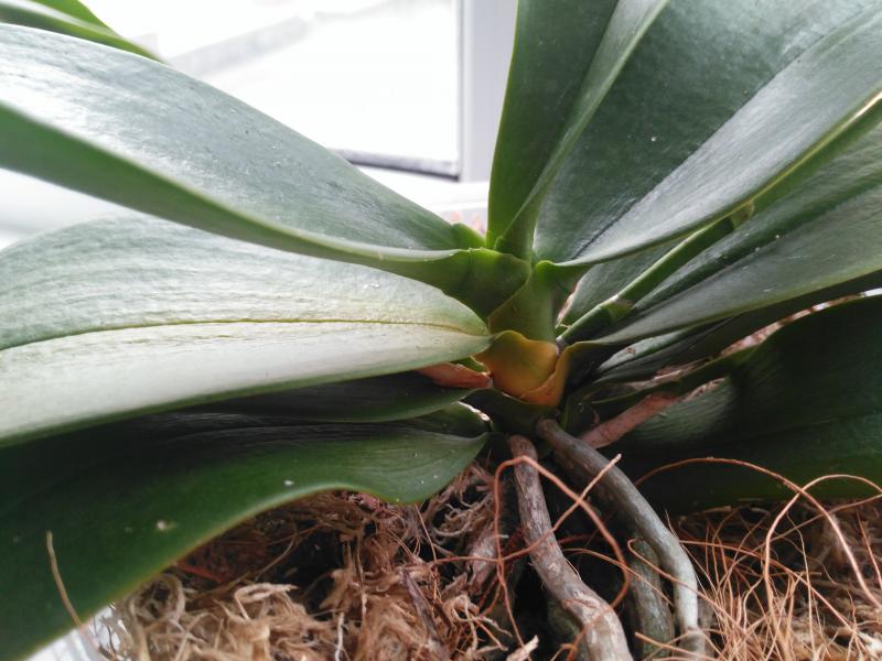 Подозрительно все это (( Вода в пазухи не попадала, именно там, где желтеет? Я бы по-любому насторожилась и на всякий случай обработала фунгицидом.Мини марк, отцвел потом засушил цветонос затем начали желтеть листья. С корнями все в порядке с нижними листьями тоже. Помогите советом что делать?