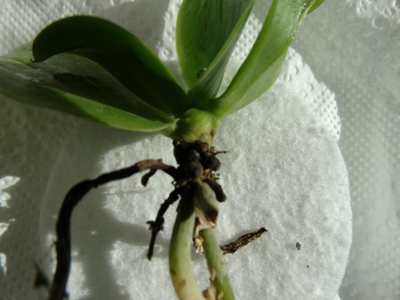 Прошу помощи ! Вчера получила Phal. violacea indigo x [(Phal. tetraspis x speciosa ) x Phal. violacea indigo, на стволике растения черные пятна,все новые корни закуклены ,живых только 2 и то один под сомнением,на первой паре листьев около стволика черная окантовка ,пока искупала в фундазоле сейчас сохнет, что еще посоветуете сделать, очень жалко малыша ведь должен быть красавцем когда вырастет.