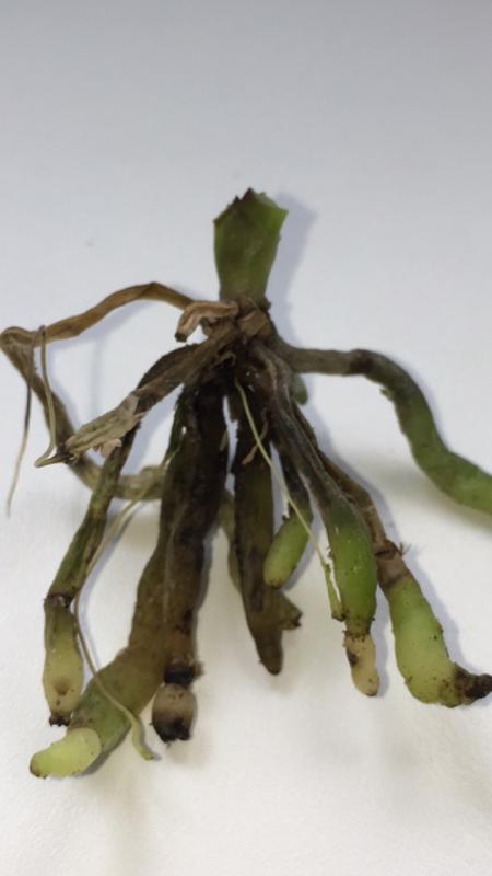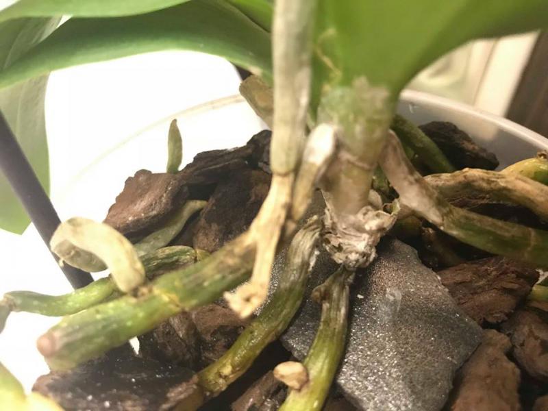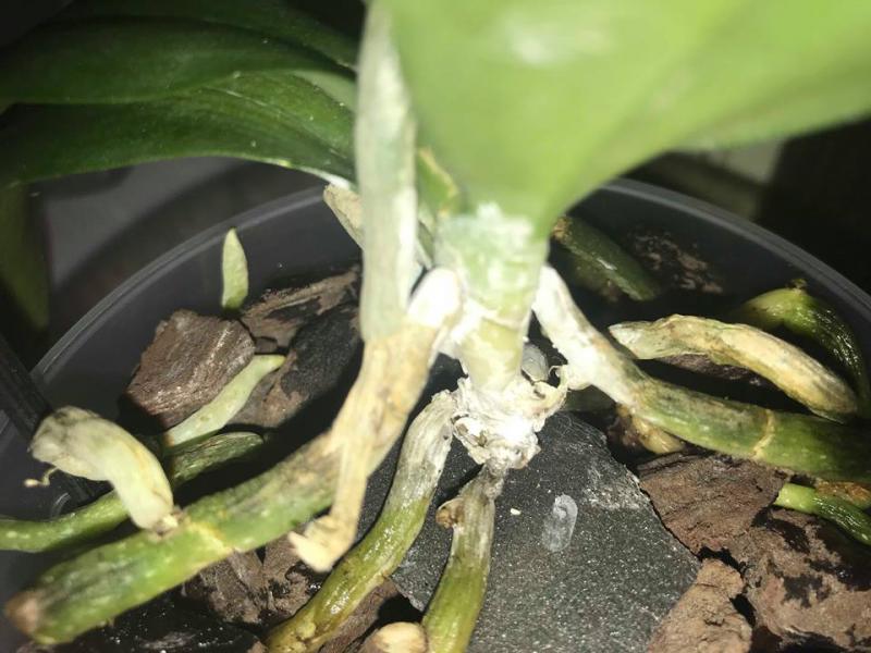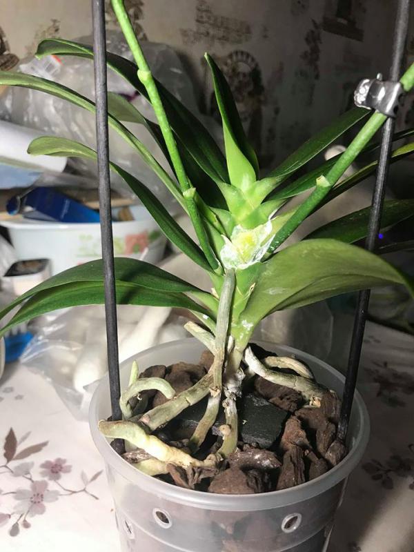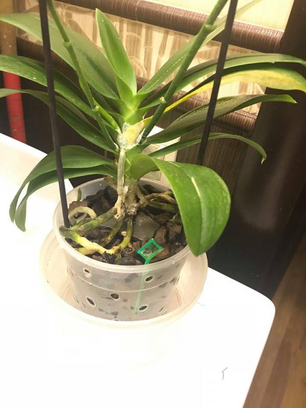 Жалость уже для меня сейчас последнее дело, главное спасти растюху. В общем я сейчас рубанула ему шейку с корнями, прилично укоротила см. на 3. Замазала ее фундазолом. Под попу положила пенопласт и зафиксировала дугообразным держателем цветоноса, не успела обрезать сами цветоносы, они отцвели, зато стали отличным держателем. И не стала вокруг обкладывать мхом, стоит ли?