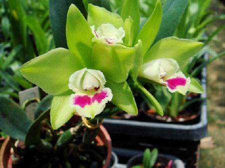 Миниатюрный гибрид между Cattleya Prostherchea Rhyncholaelia теплого содержания. Высота растения 6 см. Цветок около 10, кажется невероятно огромным по отношению к самому растению.